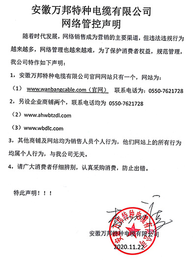 鄭重聲明:安徽萬邦特種電纜有限公司官方網站為:www_wanbangcable_com.zhiqushidai.cn,除此之外無任何子網站或合作網站,其余均為假冒偽劣。電話:0550-7621728 13485756353 地 址:安徽省天長市滁州高新技術產業開發區經四路29號